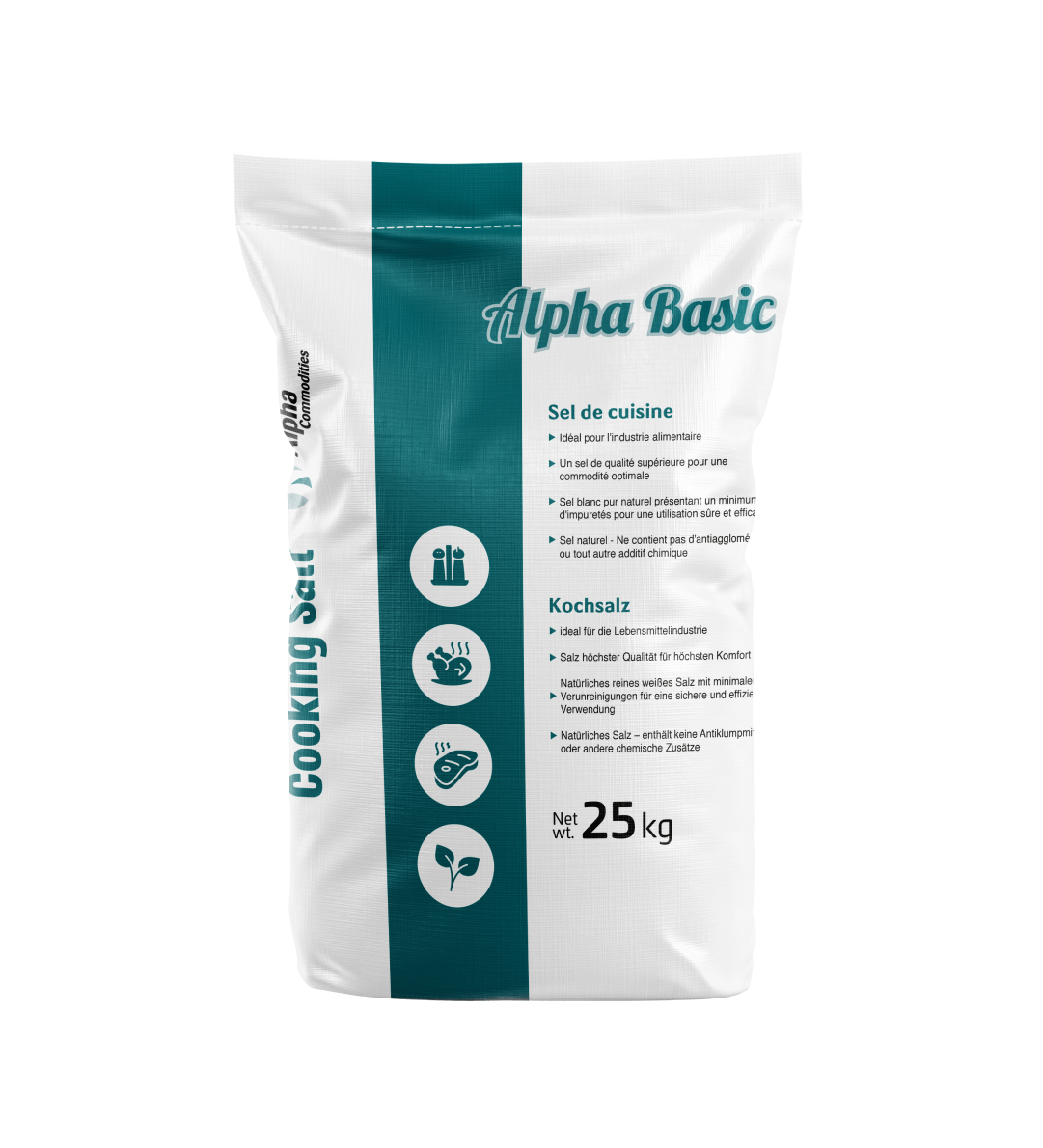 Perfectly granulated 1 -3mm salt for cooking, meat koshering and food preparation, provided in 25kg PE bags or Big Bags, ensuring quality and freshness.